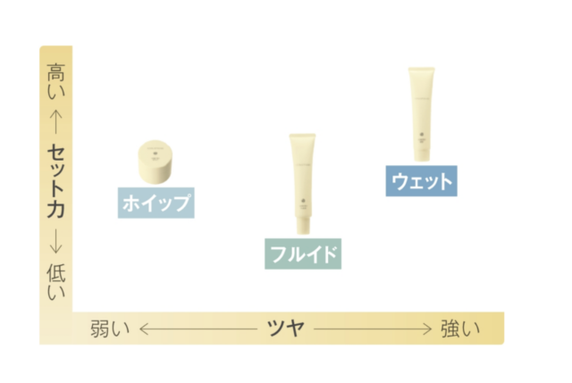 土台作り(2種類)・ヘアミルク(3種類)・スプレー(3種類)・ムース(1種類)・WAX(3種類)