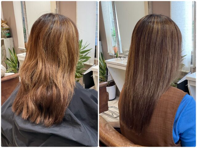 トリートメントと呼ぶべきか、クセを和らげる髪質改善と呼ぶべきか難しいところですが、何度も試行錯誤を繰り返しながらより効果が高い技法を模索しています。