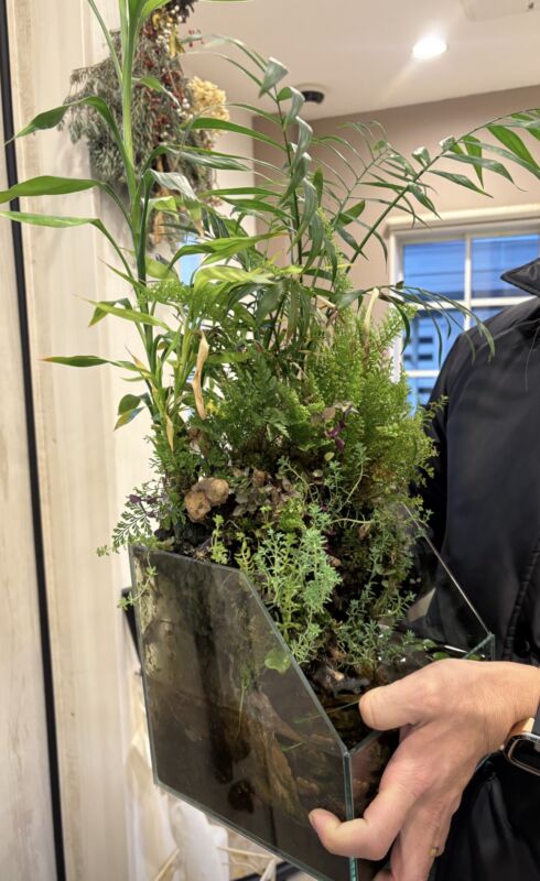 苔や多肉植物、シダ植物等を石や流木に直接植え込み景色を作っていきます。