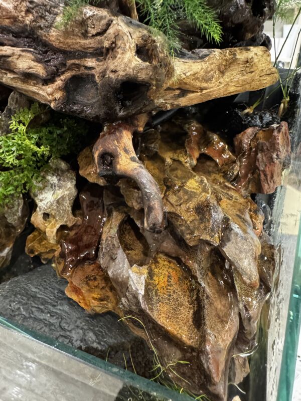 植物でもりもりでしたが大幅に伐採し岩と流木を組み直し作り上げました。