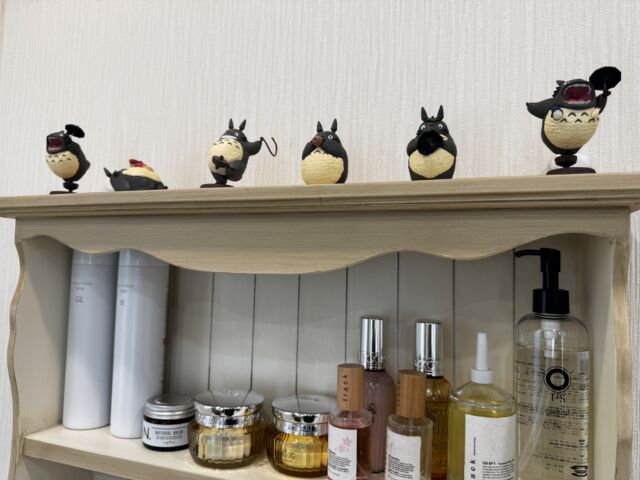 個室とスタイリング剤スペースに新たなトトロ専用ディスプレーエリアを作りました。