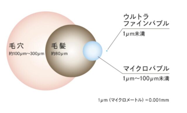 毛穴や毛髪よりも遥かに小さな気泡を発生させ、毛穴に詰まった汚れを除去したり、髪の毛の内部を変異させトリートメントの浸透率を高め、栄養成分やカラーリングの色味が抜けにくくなります。