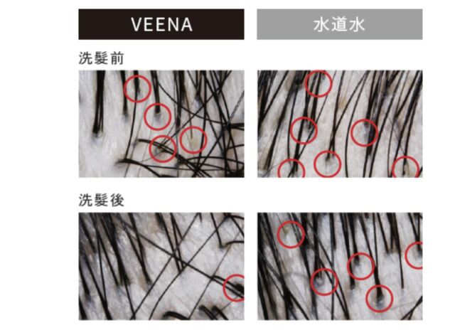 当店で採用したReda社のVEENAは、他社の業務用マイクロバブル発生装置と比較した場合、より微細でバブル発生量も多く髪や頭皮に新しい洗浄効果をもたらします。